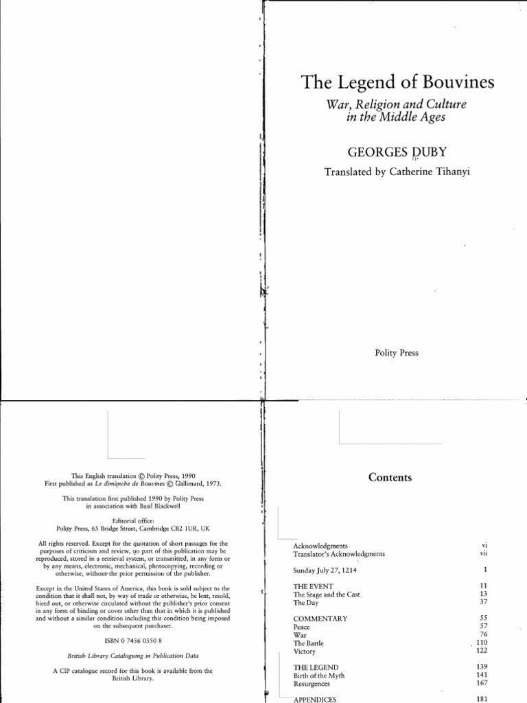 Duby Georges The Legend Of Bouvines War Religion And Culture In The Middle Ages Polity Press 1990 Pdf Armour Knight