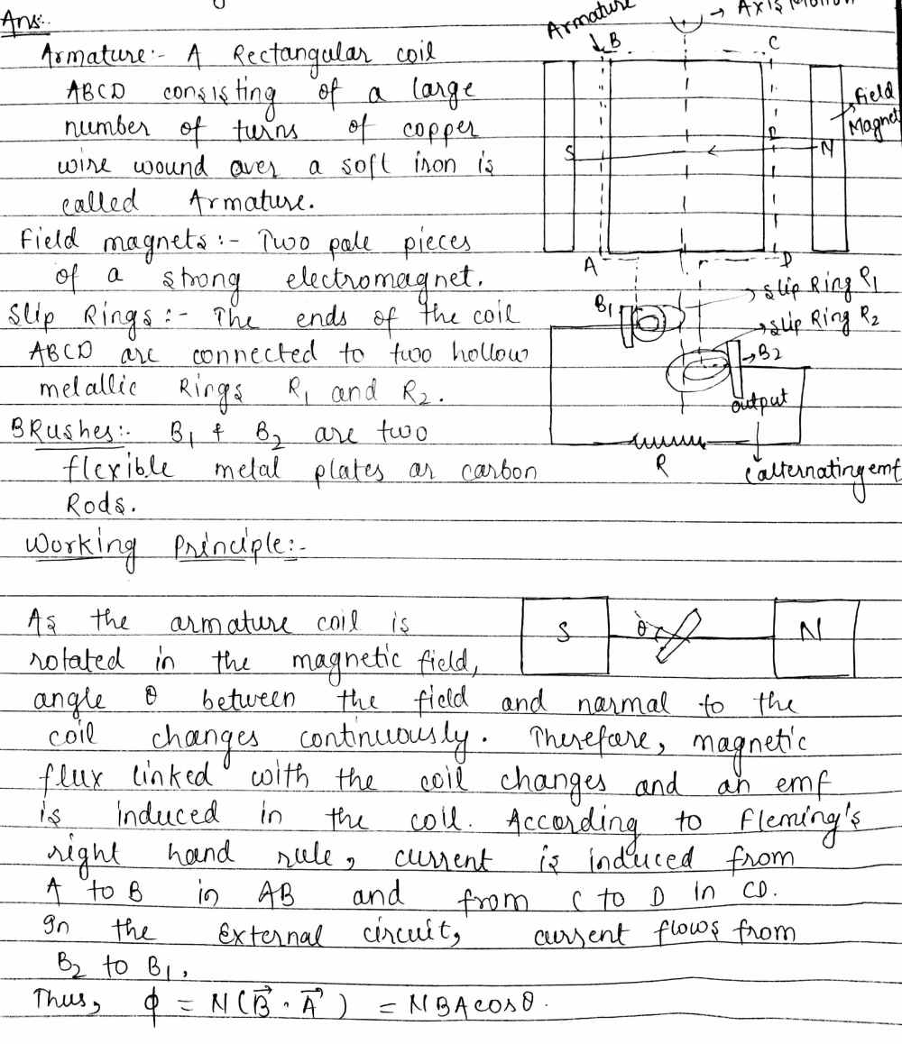 Draw A Schematic Sketch Of An Ac Generator Describing Its Basic Elements State Briefly Its Working Principle Snapsolve