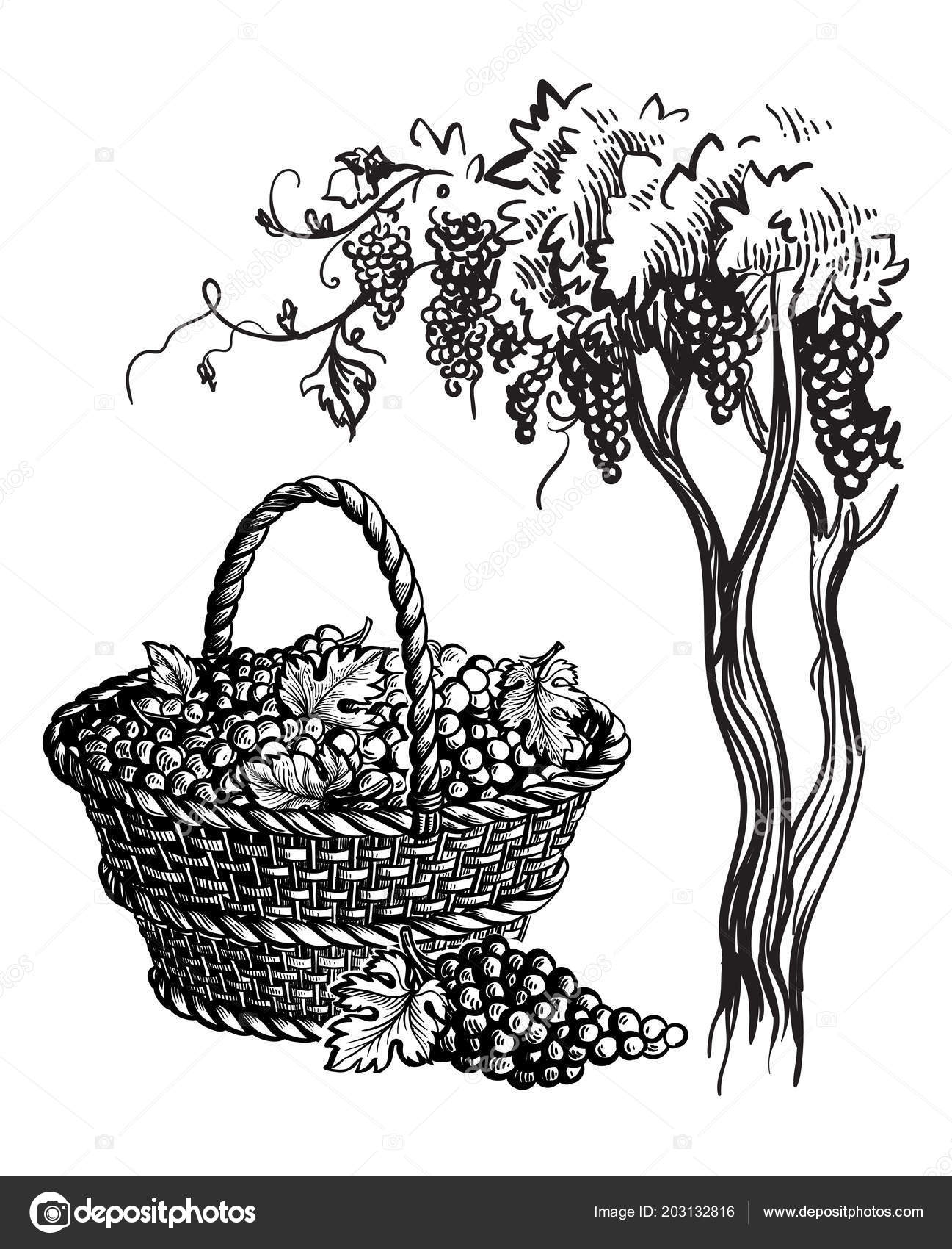 Basket With Grapes Vector Image By C Vectorgoods Gmail Com Vector Stock 203132816